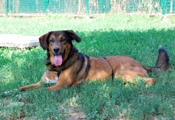 Accalappiata in Spagna a 5 mesi, finita in perreira in attesa di soppressione; Zinnia viene salvata e trasferita in Italia.